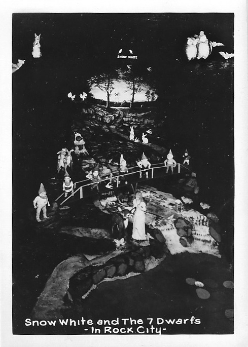 I found any number of vintage postcards of rock city gardens over on eBay